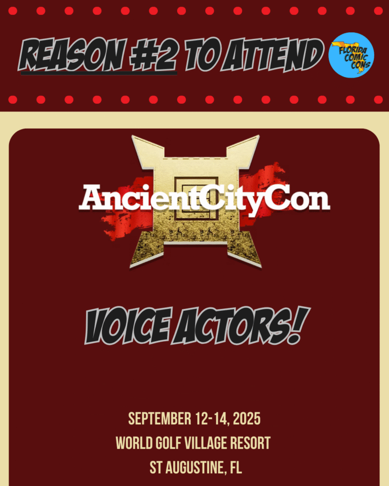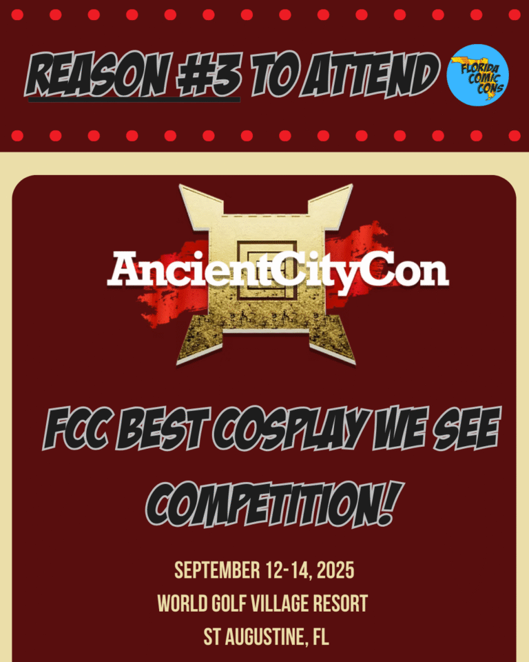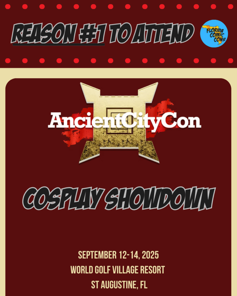 Ancient City Con 2025 (Sept 12th-14th) is sliding into the spotlight as it quickly approaches! Hosted in Saint Augustine, FL. at the World Golf Village Renaissance Resort, with so many other amazing local events and delights to see, you know this convention has a lot of local gems to compete with and no one does it better. Now in its 17th year, this convention holds your attention and is a fan-favorite, bringing together everything nerds like us love—sci-fi, fantasy, anime, horror, tabletop and video gaming, cosplay, comics, and more. Like these 5 Reasons to attend Ancient City Con 2025.